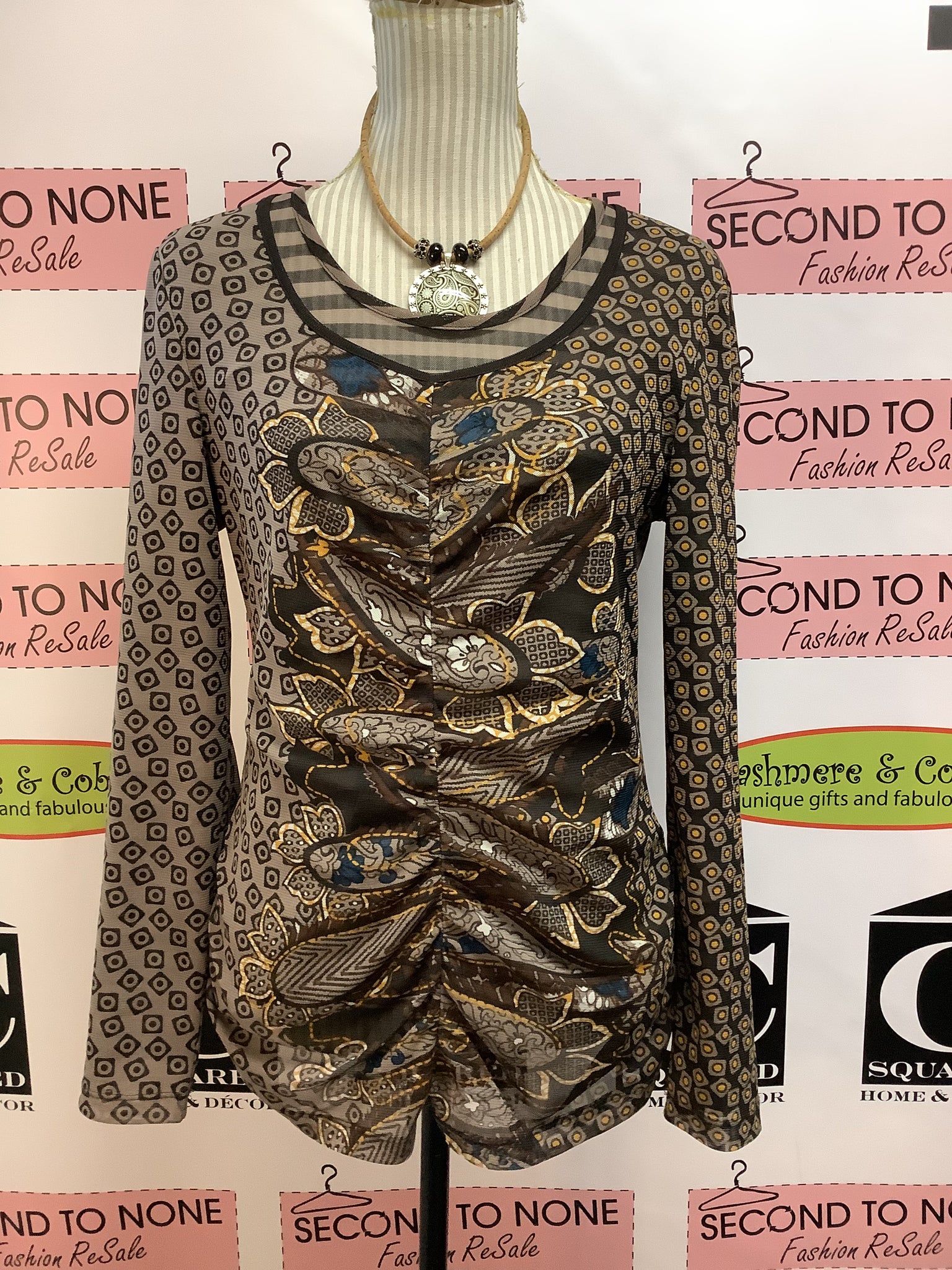 Throw it back to the 2000s with this Y2K Mesh Long Sleeve! This fooler top has a unique style that is sure to start a trend, with a striped black and brown top underneath, overlayed with a brown mandela print and square pattern details. Get ready to be the talk of the town with this one-of-a-kind (but totally era-appropriate 😉) look!