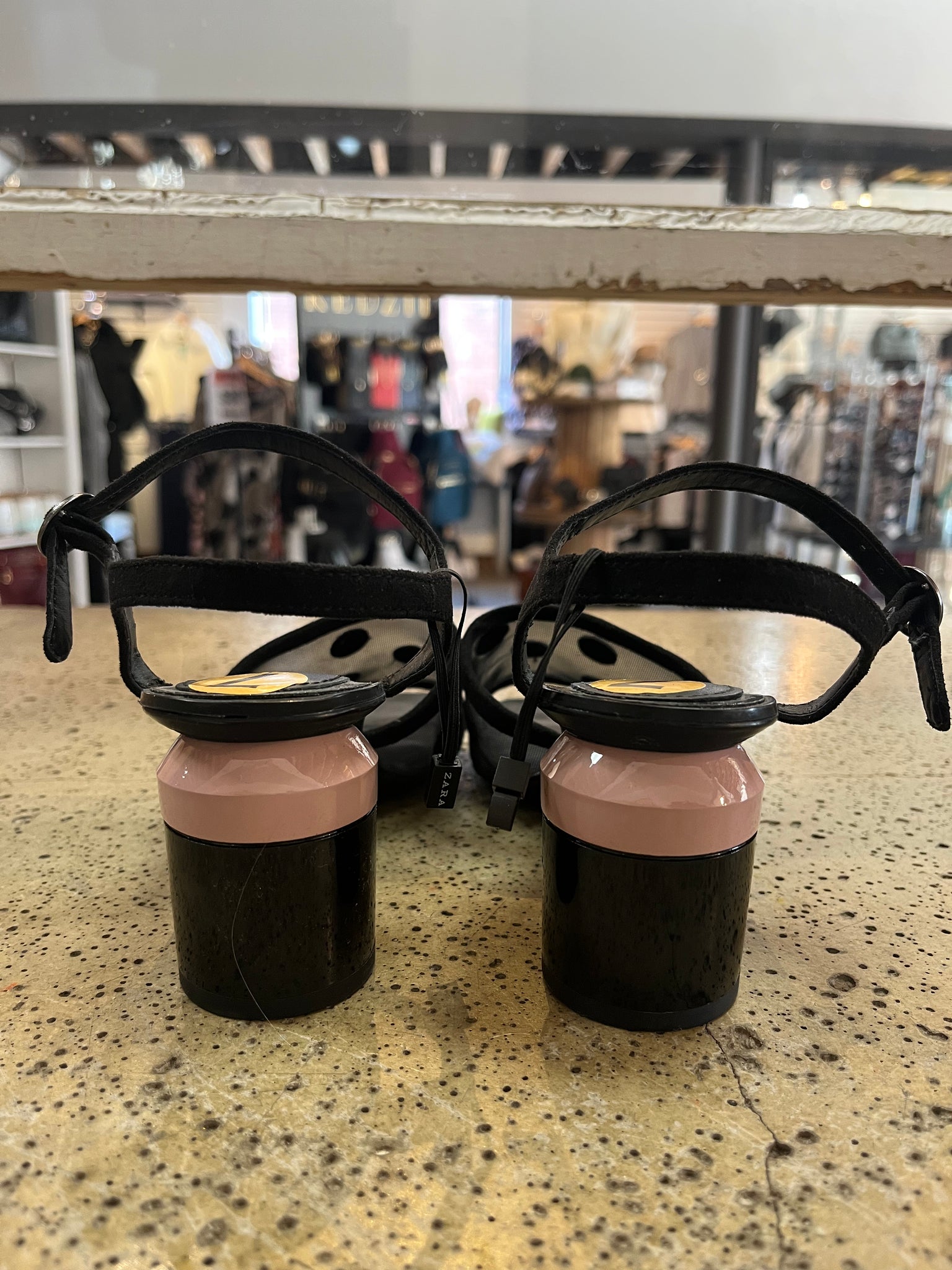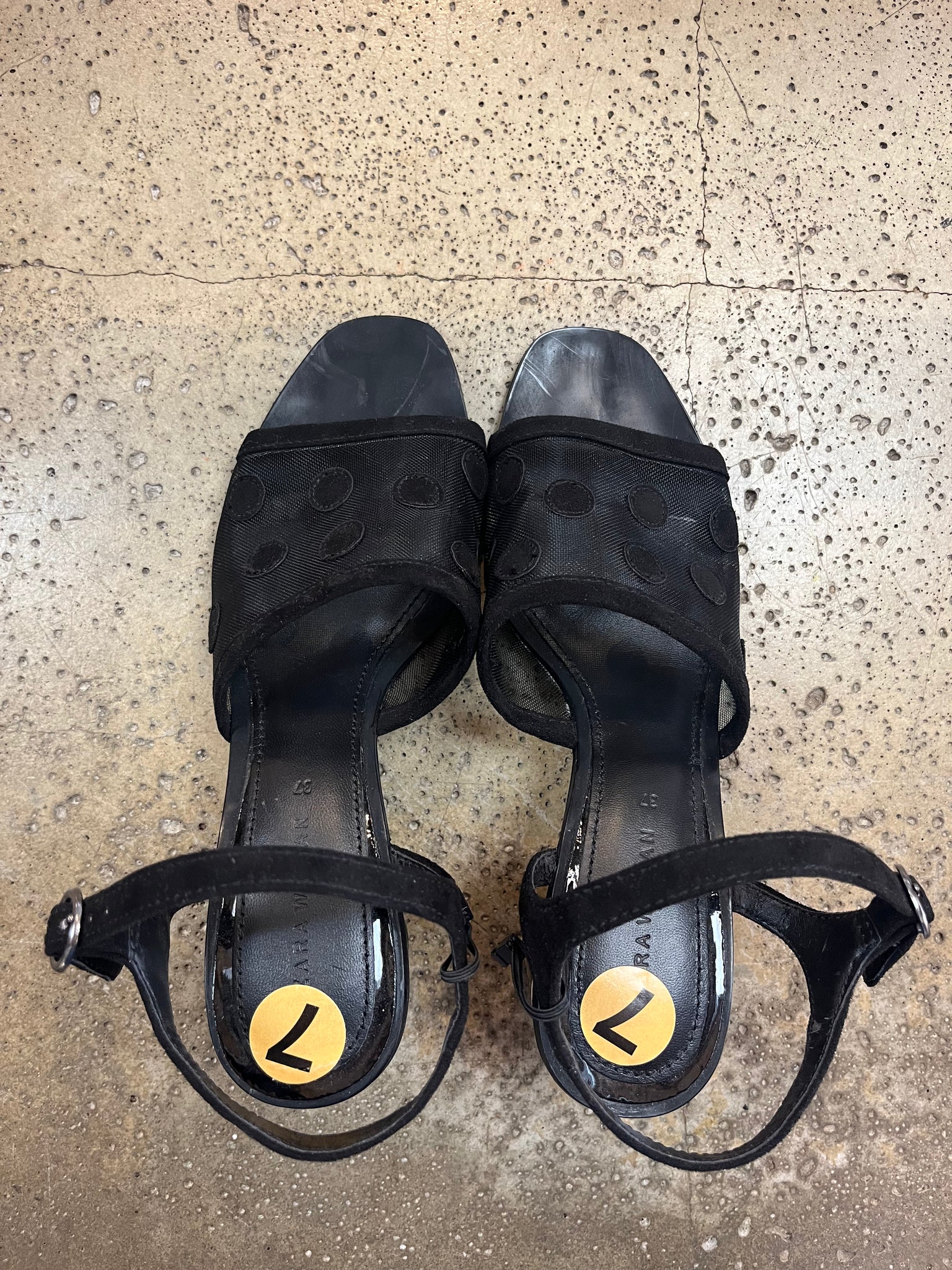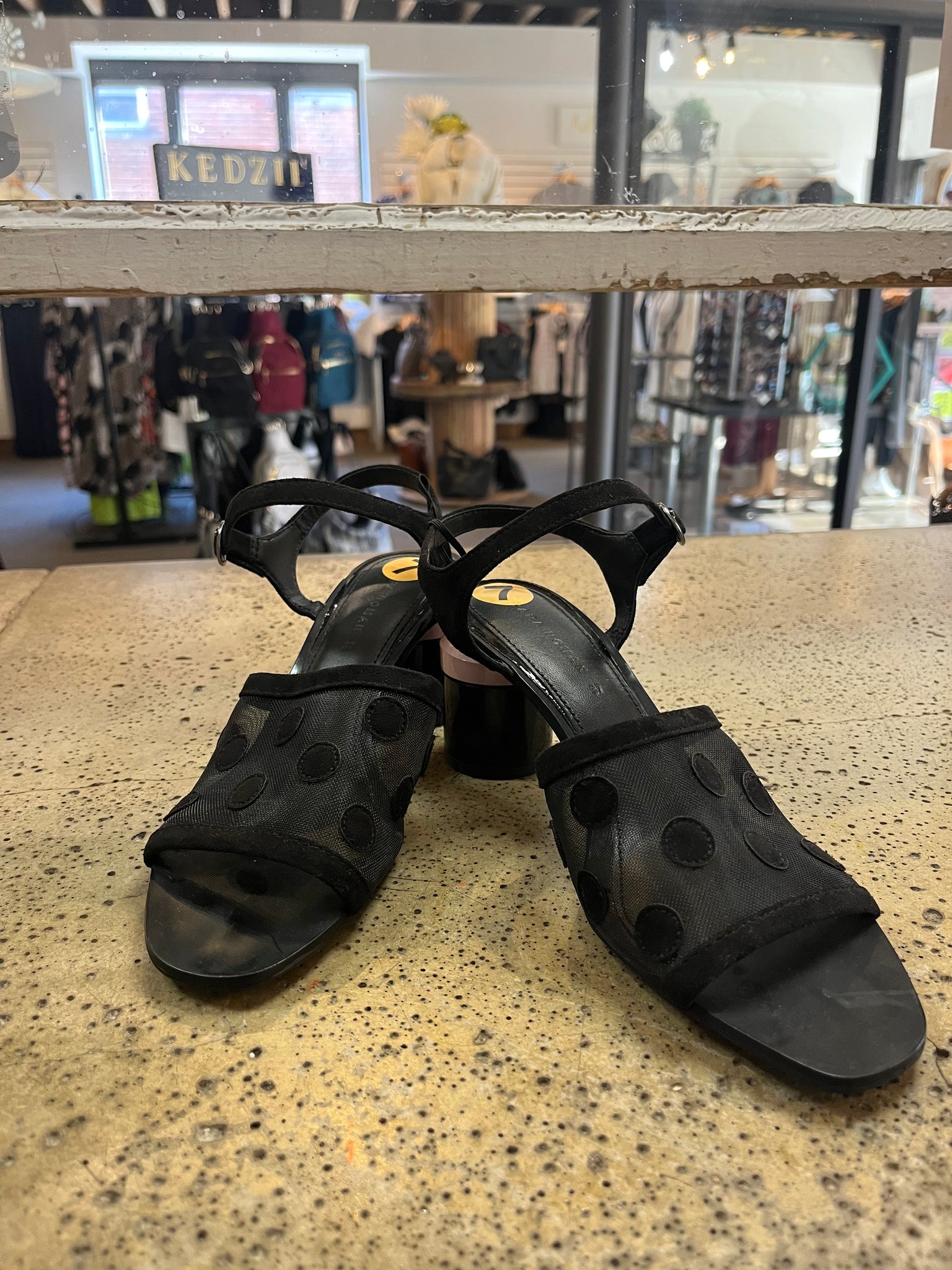 Step into style with Zara's Mesh Polka Dot Heels in size 7. Featuring soft suede-like straps with an adjustable buckle and a two-toned glossy cylinder heel for a touch of luxury. Perfectly on-trend with polka dots and a sexy open toe design. Walk comfortably with a 2.5 inch block heel and wide mesh strap. Brand new and never worn. Size 7.