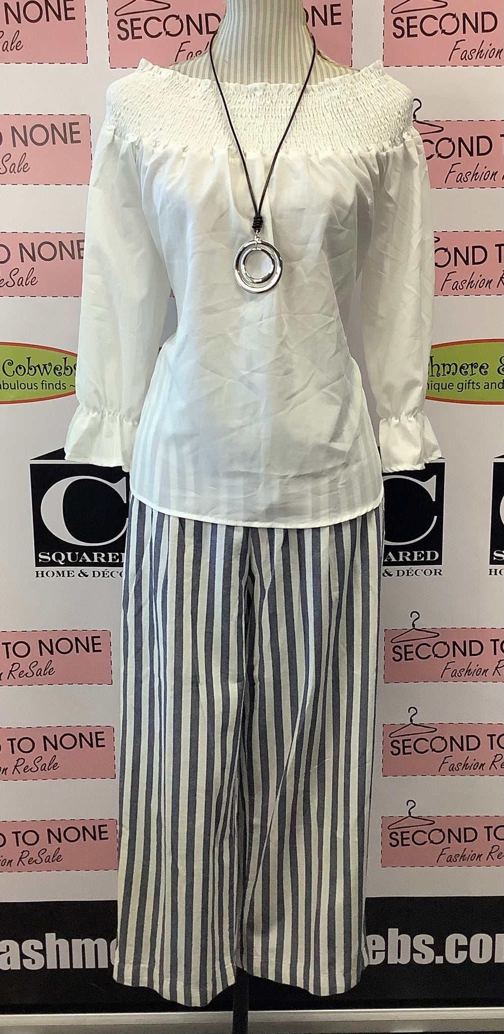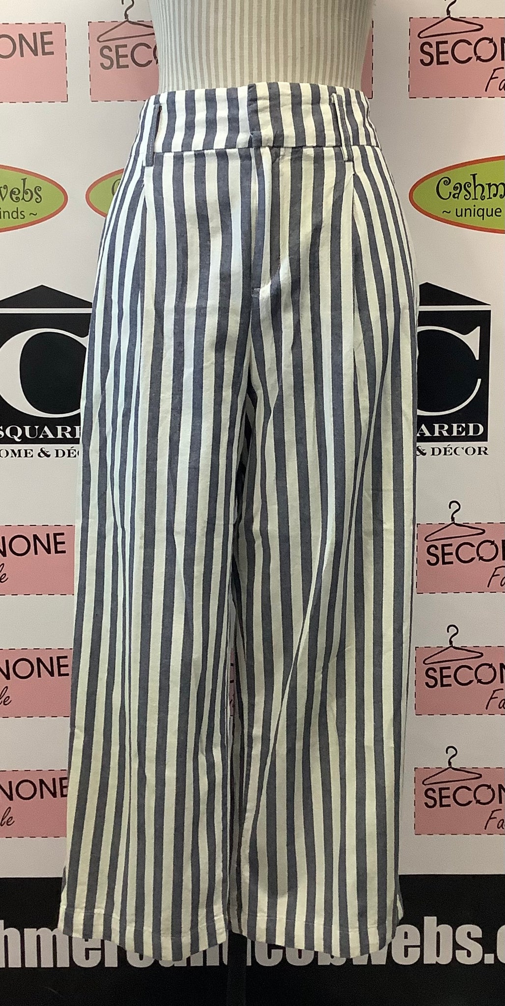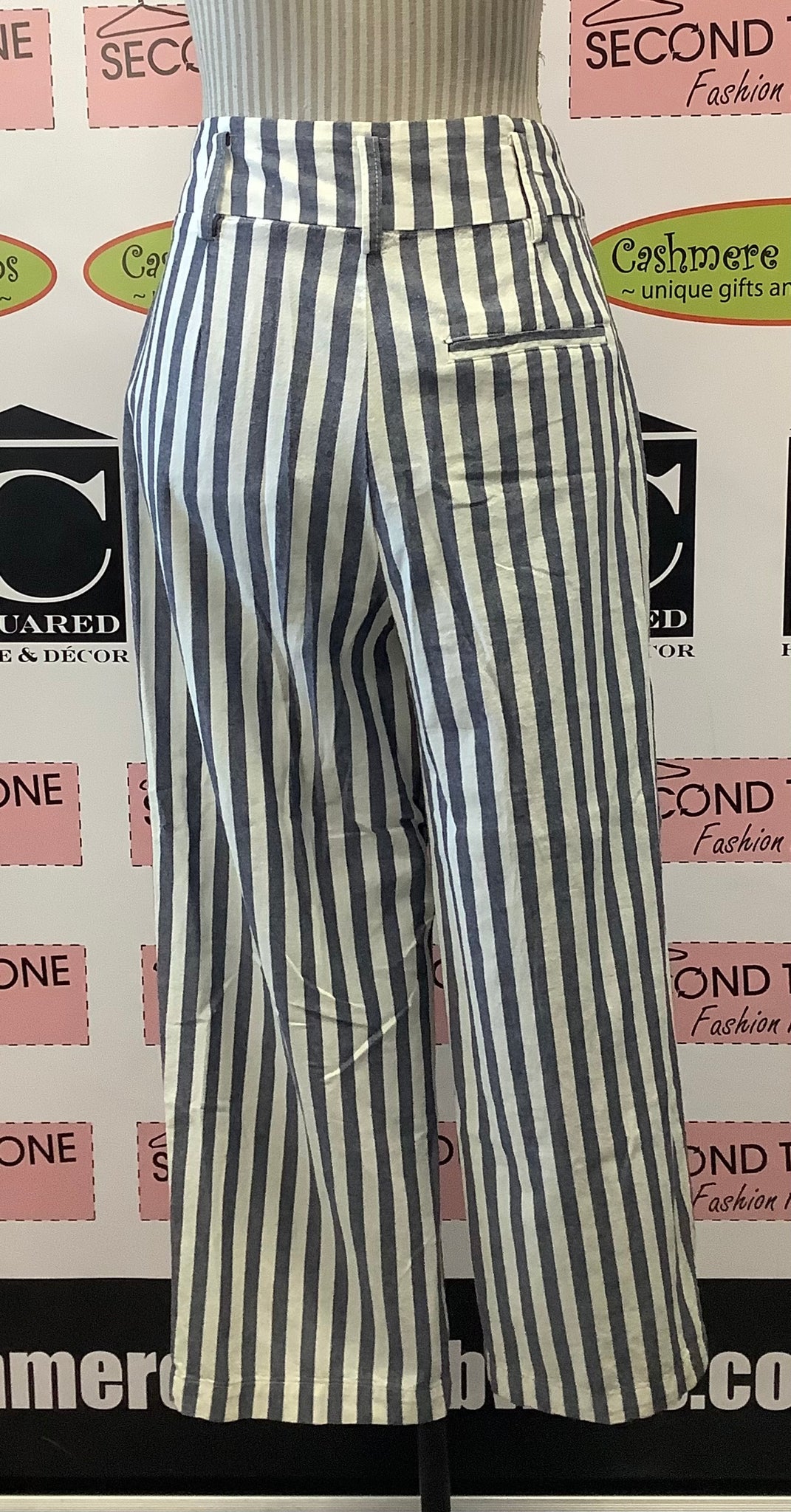 Step out in style with Zara's Straight Up Stripe Pants! These comfy denim blue and white striped pants feature a convenient zip and slide closure, plus pockets for all your essentials. Enjoy the flattering straight cut legs and make a statement without saying a word! Who said stripes were basic? 100% Cotton.