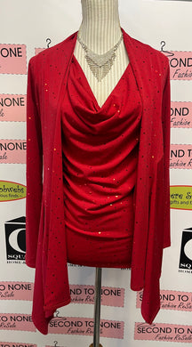 Vintage Pretty Woman Sparkly Red Top & Cardigan Set (Size S)