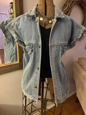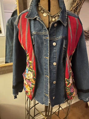 Upcycled Vintage Tapestry Vest over Denim Jacket (Size 3X)