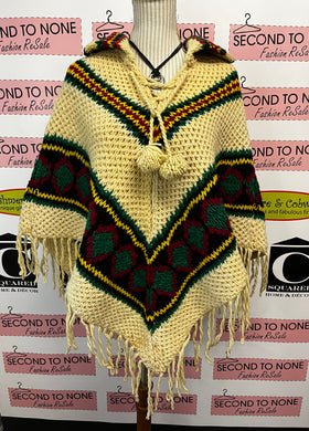 Vintage Hand Knit Wool Poncho (Size S/M)
