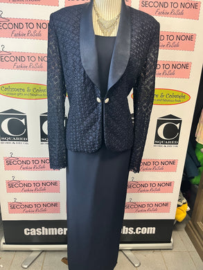 Vintage Navy 2-Piece Formal Long Dress (Size 14)