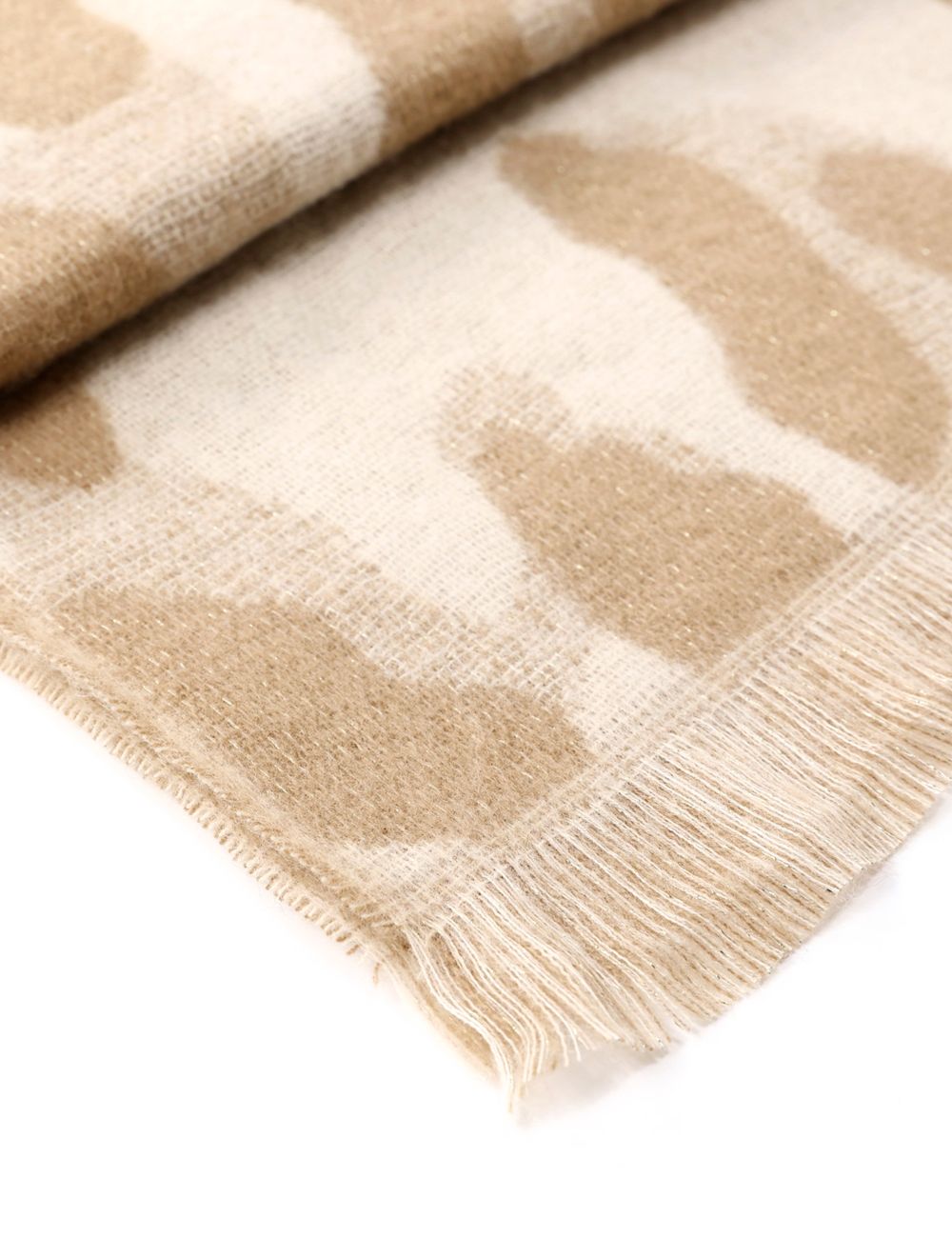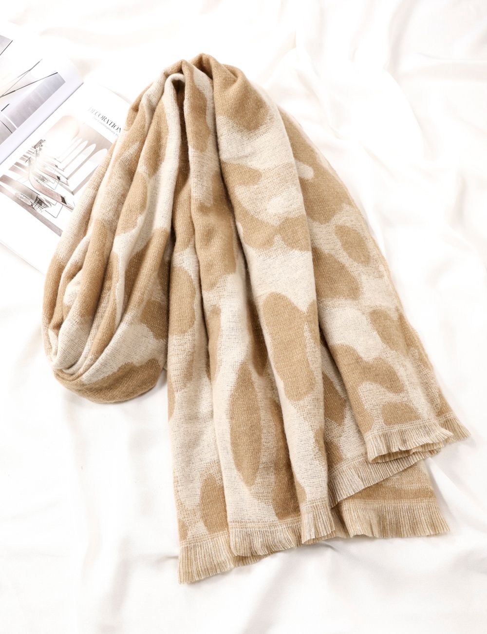 Bring a touch of untamed charm to your winter wardrobe with this delightful beige leopard print scarf. Luxuriously soft in cream and beige hues, it's the perfect companion for layering over coats and sweaters. The playful leopard pattern adds personality without overwhelming your look, while the sweet fringe detail at the hem brings movement and whimsy to every wear. Compact yet impactful, this accent piece is your go-to for transforming any outfit from ordinary to unexpectedly fabulous.