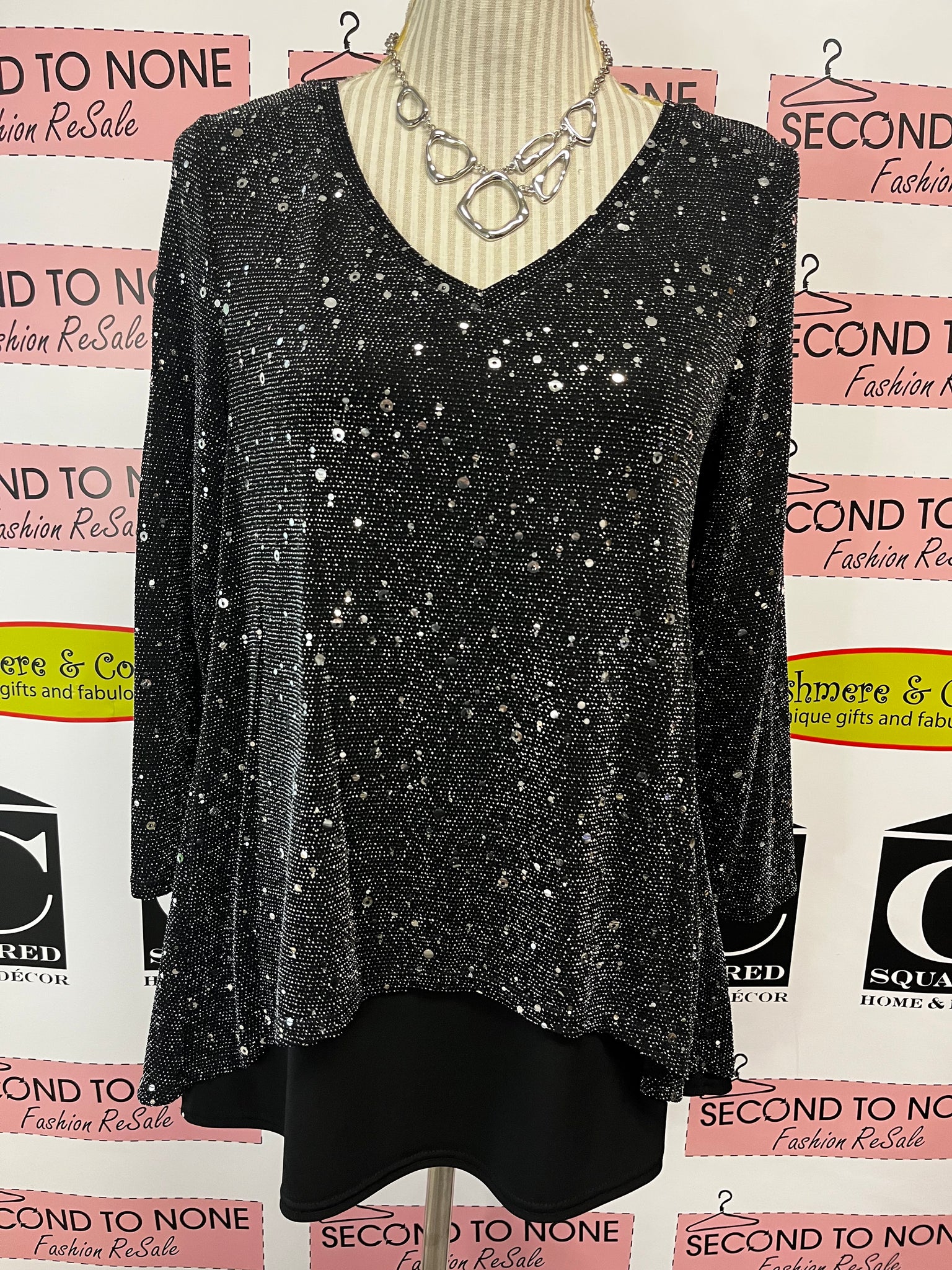 Black & Sequin Fooler Top (Size S)