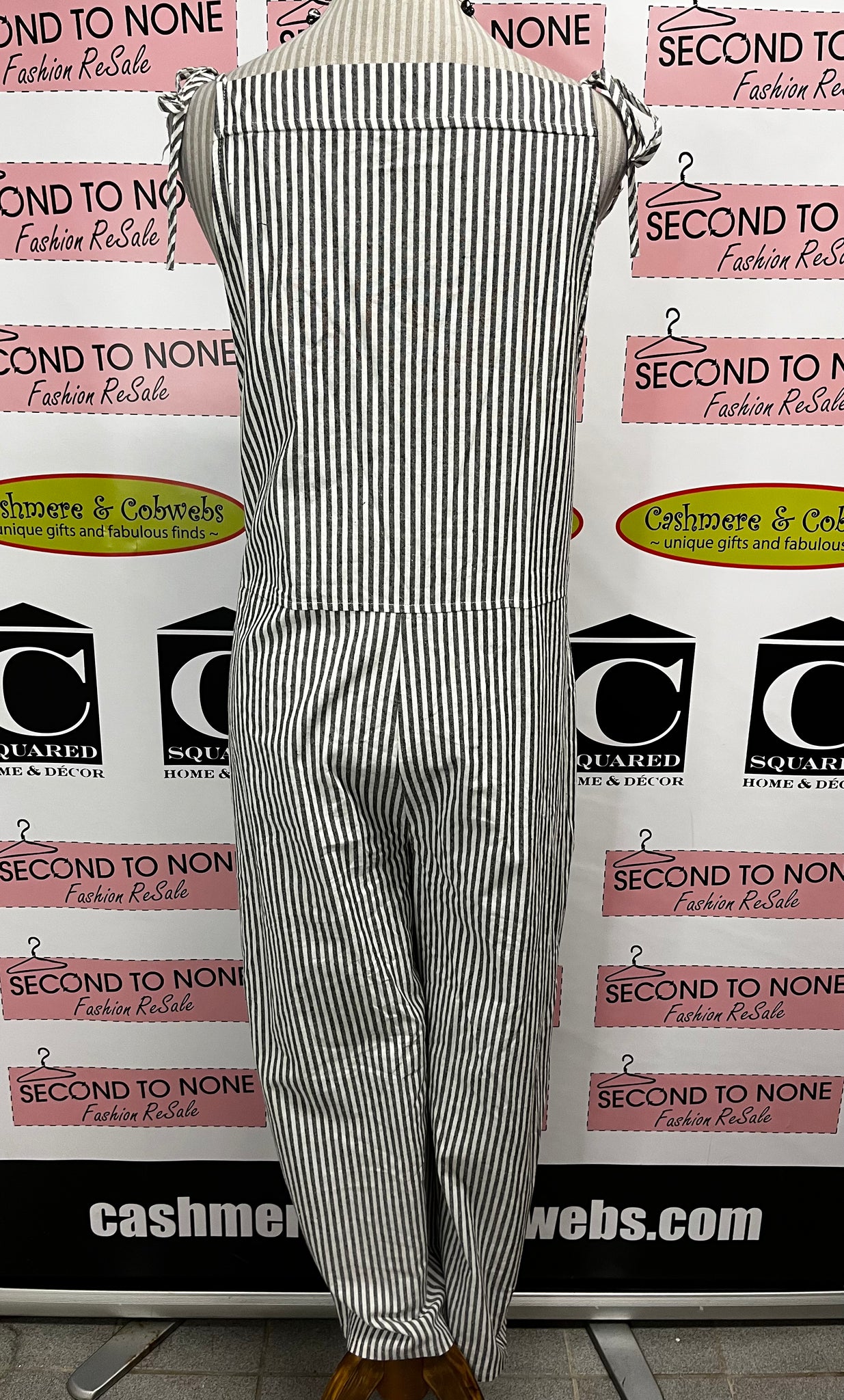 Jump into style with our Blue & White Striped Jumpsuit! Made from a comfortable and breathable cotton and linen blend, this jumpsuit features bold vertical stripes and adjustable tie straps for the perfect fit. With wide legs and square front pockets, it's the perfect blend of fashion and functionality.