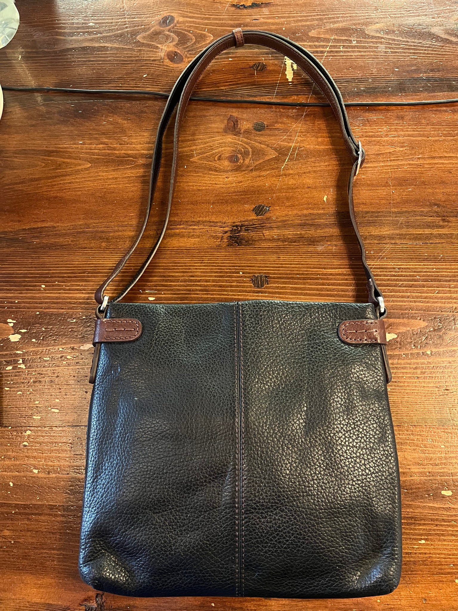 Say hello to your new go-to crossbody purse! The Brighton London Groove Selena Leather Crossbody is crafted from luxurious black leather and features charming chocolate brown accents. With an adjustable strap and heavy duty magnetic closure wallet front, this purse has plenty of pockets and a handy key hook. Long-lasting quality? Check!