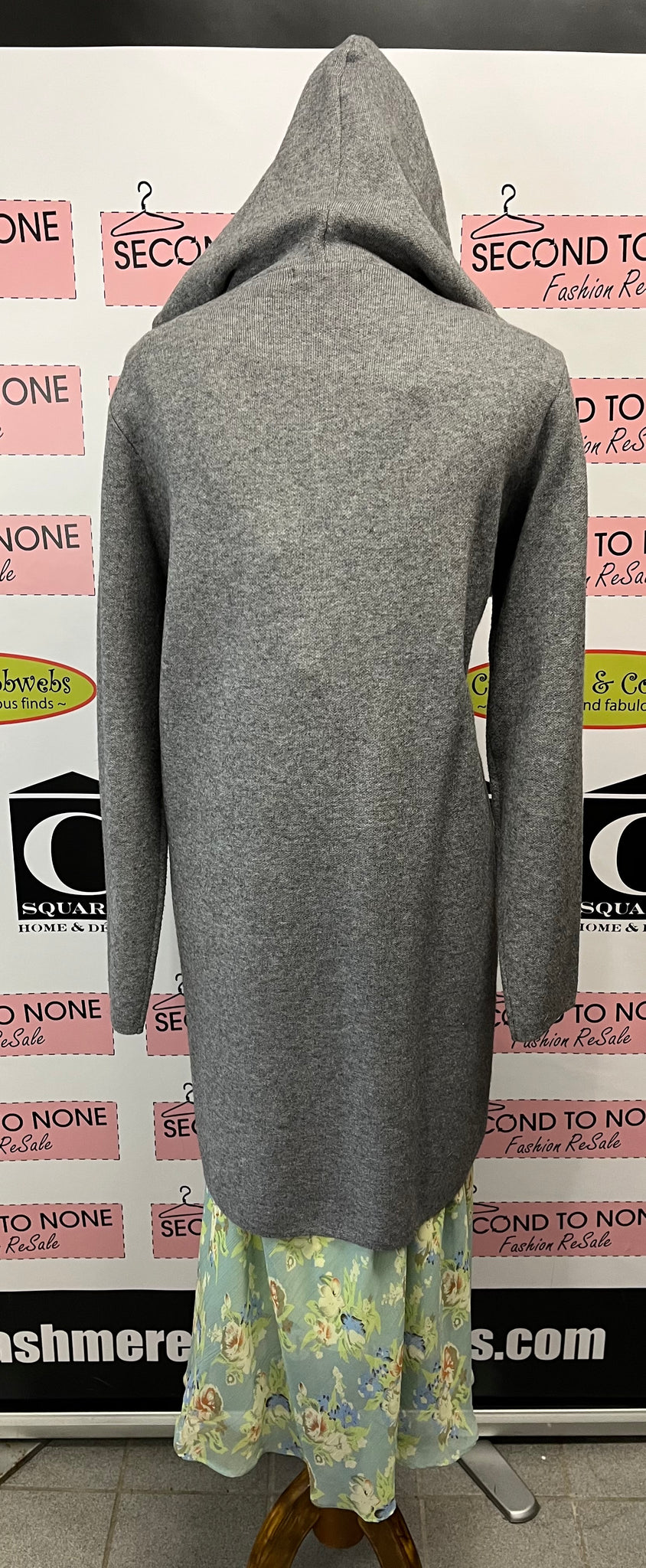 Wrap yourself in effortless style with this cozy long grey cardigan—your new go-to for everything from lazy Sunday lounging to braving the cold. The open front design and two practical pockets make it endlessly wearable, while the longline cut adds a touch of modern flair. Layer it over your favourite tees or turtleneck for that perfectly put-together vibe. Versatile, comfortable, and undeniably chic, this medium grey essential works as hard as you do. Brand: DKR & Company. Size XL.