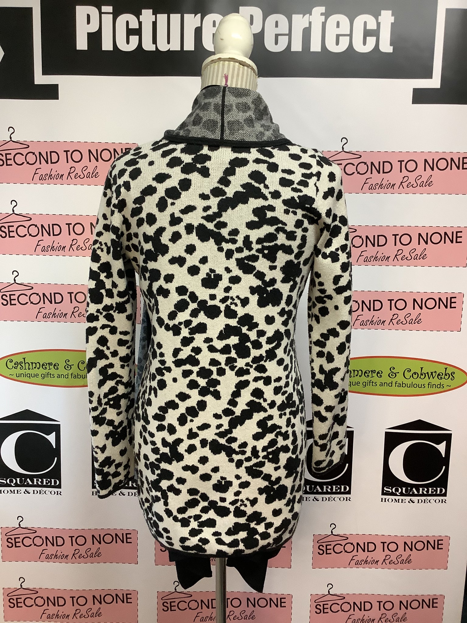 Inspired by Cruella's iconic aesthetic, this sophisticated Dalmatian cardigan captures runway-ready elegance in an effortlessly wearable piece. Crafted from lightweight, buttery-soft fabric, the long-sleeved design features a striking black and white spotted pattern that commands attention without demanding effort. Layer it over a crisp black shirt, pair with classic denim, and finish with chunky boots for an instantly polished look. Beautiful enough to turn heads, comfortable enough for everyday wear—this is fashion-forward dressing made lovely and accessible.