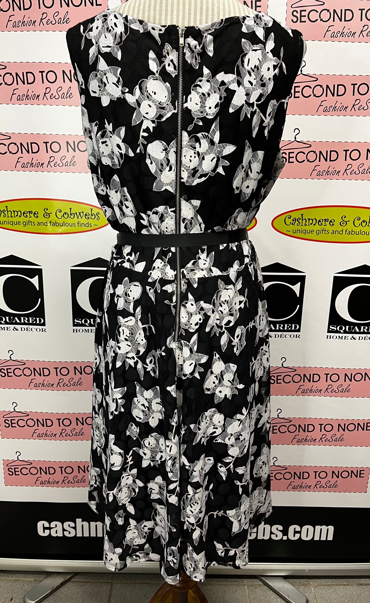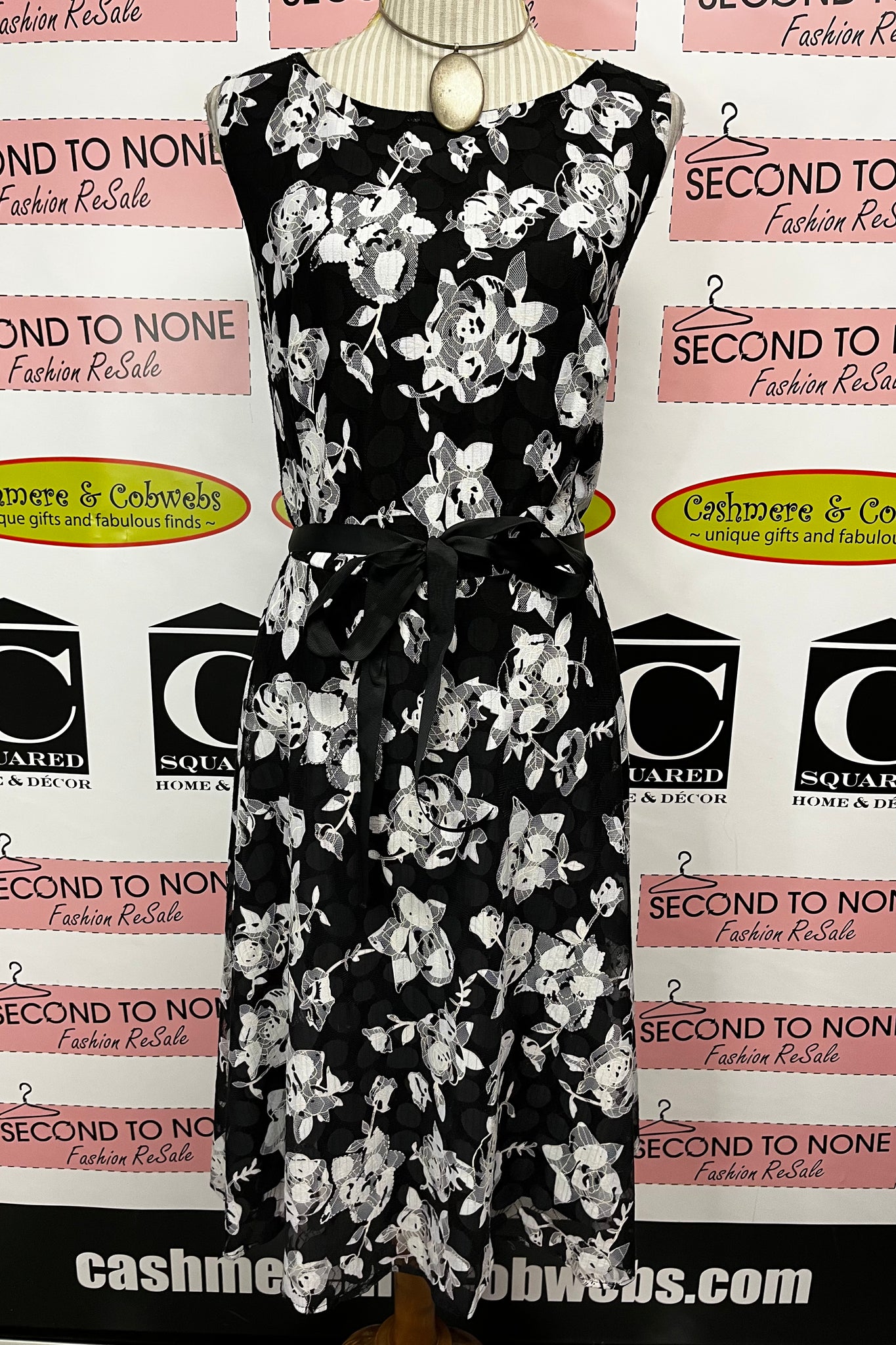 Effortlessly chic meets wonderfully wearable in this Danny and Nicole stunner. The striking black and white floral print commands attention while delicate lace layering adds that touch of sophistication you've been craving. Sleeveless styling keeps things breezy, and the satin belt cinches your silhouette with just the right amount of polish. Perfect for date night, special occasions, or whenever you want to feel absolutely fabulous in your own skin.