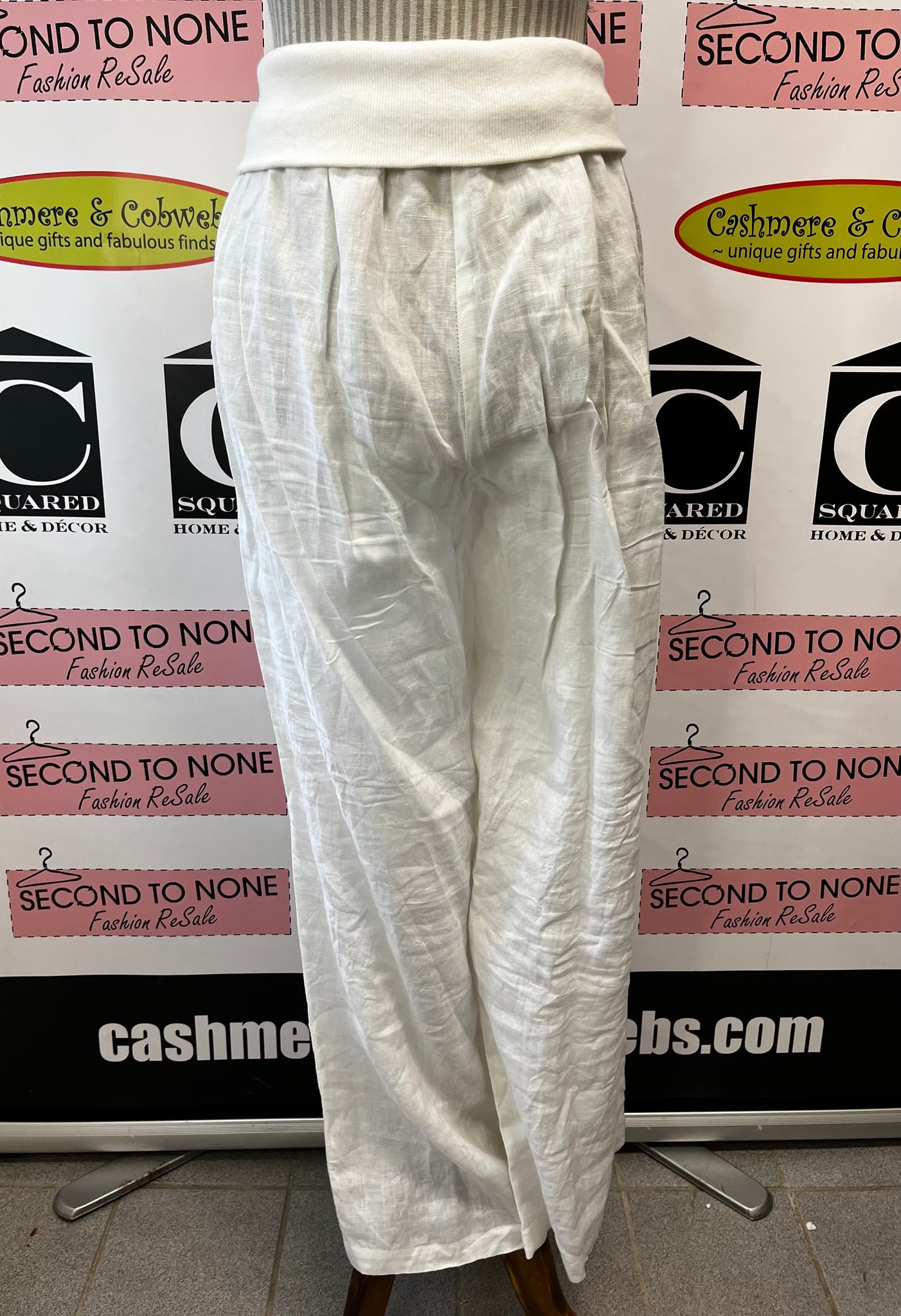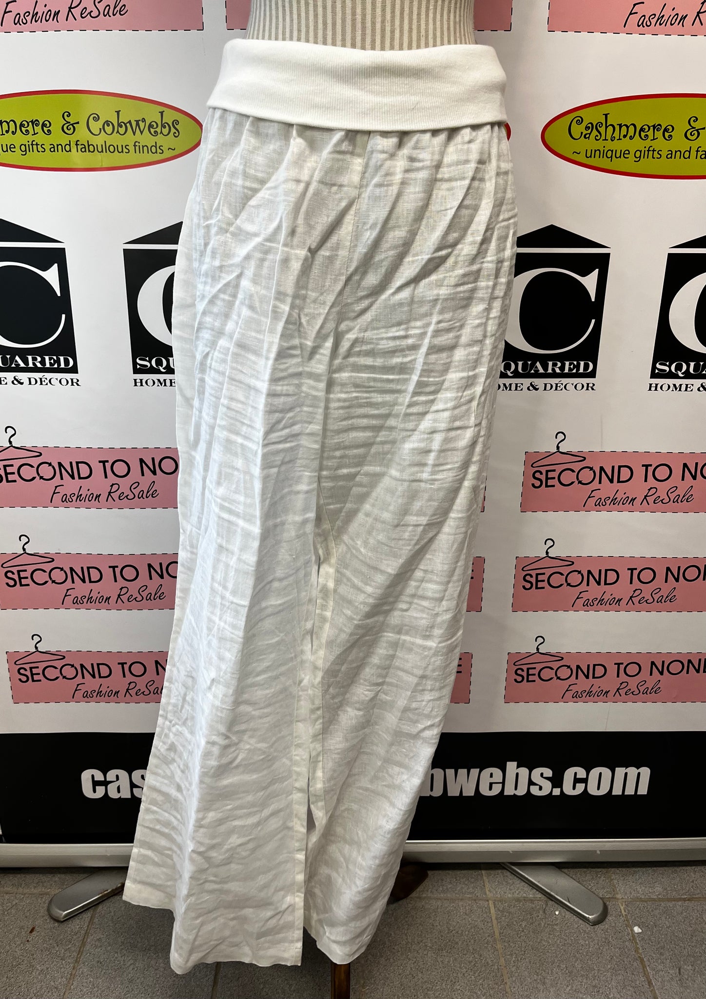 Effortlessly chic and breathable, these Jennifer Lopez linen pants are your summer wardrobe MVP. Crafted from 100% pure linen, they keep you cool and comfortable when the heat cranks up. The off-white hue pairs with practically everything, while the fold-over waistband adds a relaxed, laid-back vibe that's equal parts stylish and cozy. Perfect for casual days, beach trips, or whenever you want to look put-together without trying too hard.