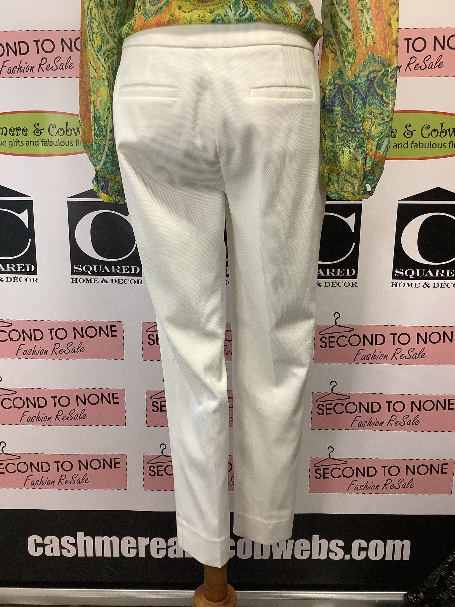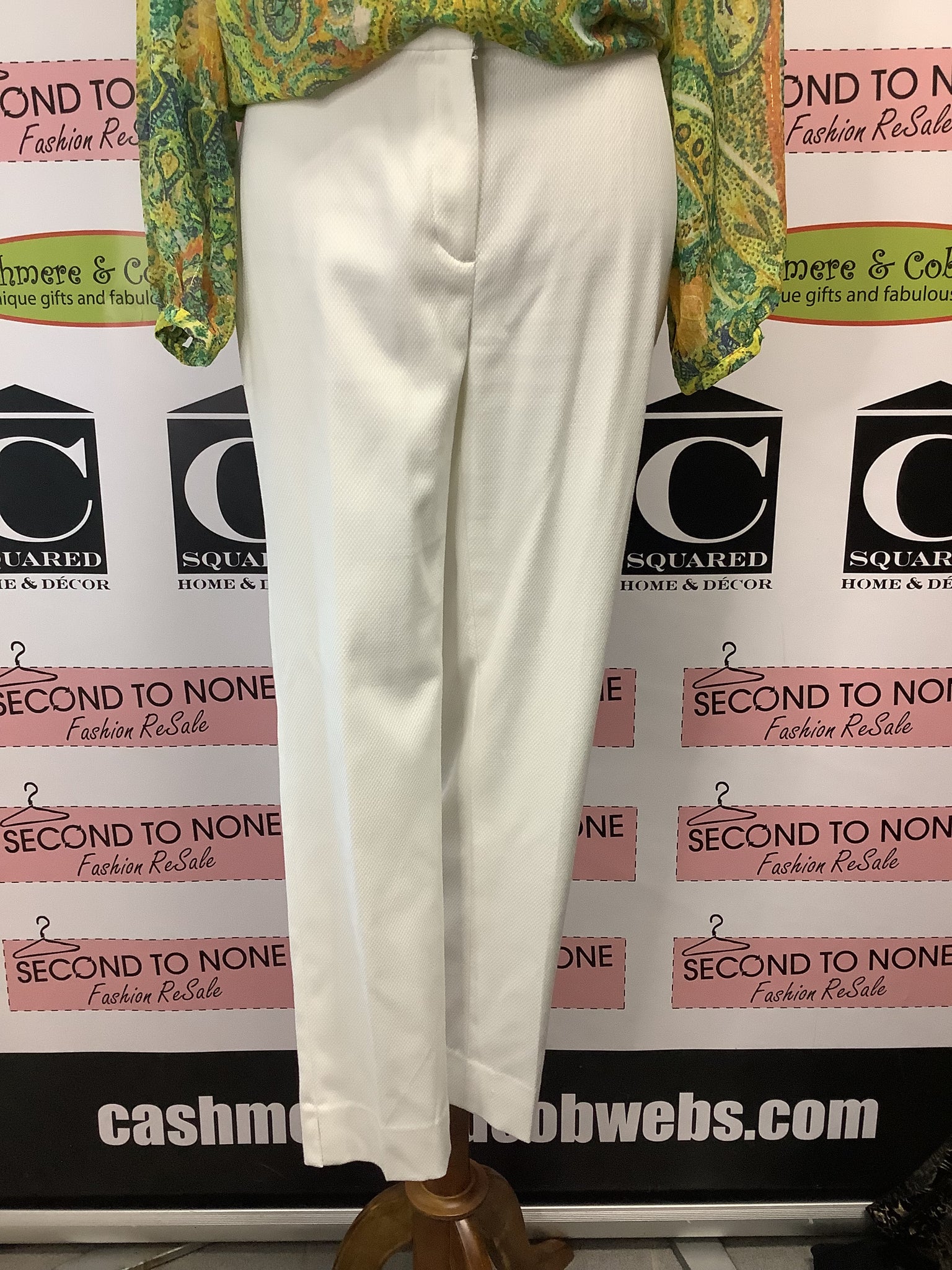 Elevate your wardrobe with these pristine white straight-leg pants, a refined staple that transitions seamlessly from office to evening occasions. Crafted in a textured fabric that resists staining, they feature a flattering silhouette with subtle side splits and cuffed hems for added dimension. Dual functional back pockets provide practical storage, while the secure button clasp and zipper closure ensure a polished fit. Whether styled for professional settings, social gatherings, or casual outings, these versatile pants deliver effortless sophistication for any occasion.