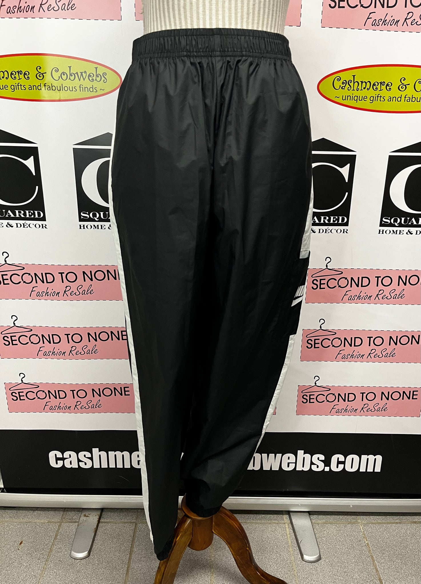 Stay comfy and ready to move in these Nike windbreaker jogging pants! Featuring a sleek black design with a crisp white stripe running down each side, they're the perfect blend of style and function. The stretchy waistband keeps things snug without the squeeze, while practical side pockets give you somewhere to stash your essentials. Elastic cuffs at the ankles lock in warmth and create that classic jogger silhouette. Whether you're hitting the gym, running errands, or just vibing in comfort, these pants have got your back—literally!