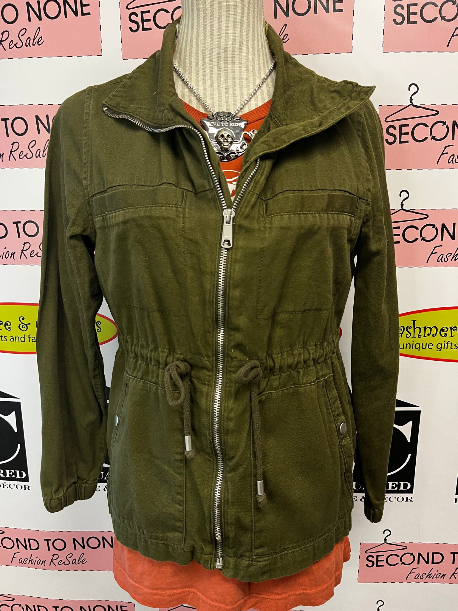 Ready for adventure? This Old Navy field jacket in army green is your new go-to layer. Crafted from 100% cotton twill, it's built tough for everyday wear. The classic field jacket silhouette features a cinchable waist for a customizable fit, while multiple pockets keep your essentials within reach. Whether you're heading out for errands or weekend explorations, this versatile piece delivers both style and practicality.