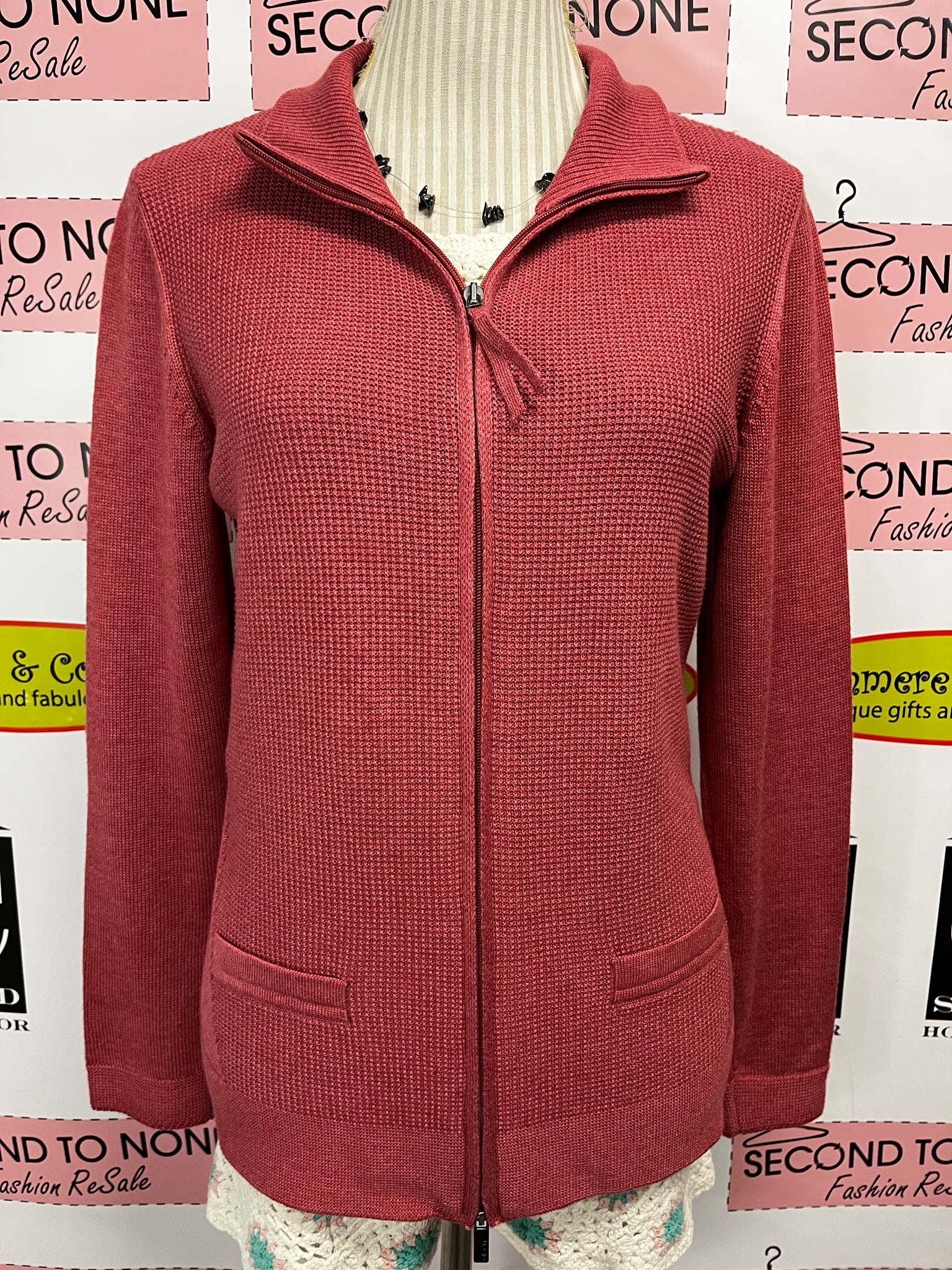 Cozy up in this charming Olsen zip-up sweater that's equal parts comfort and cool-girl vibes. Crafted from a soft cotton blend with a delightful waffle knit texture, it features that coveted stonewash finish in a warm red tone that pairs with everything. The front zip makes layering effortless—throw it on over a tee or wear it solo for instant texture appeal. Perfect for those days when you want to feel put-together without trying too hard.