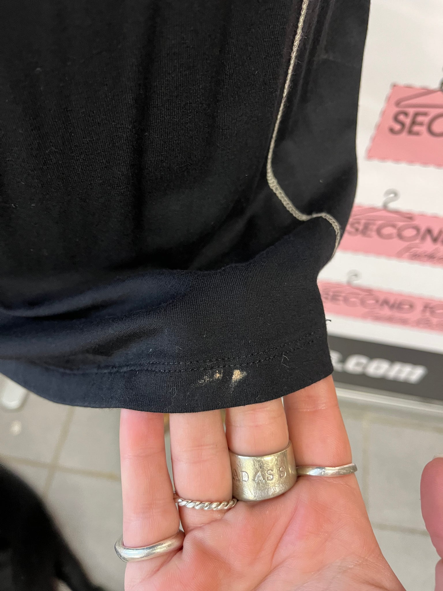 AS-IS: small bleach stain on back hemline as pictured.