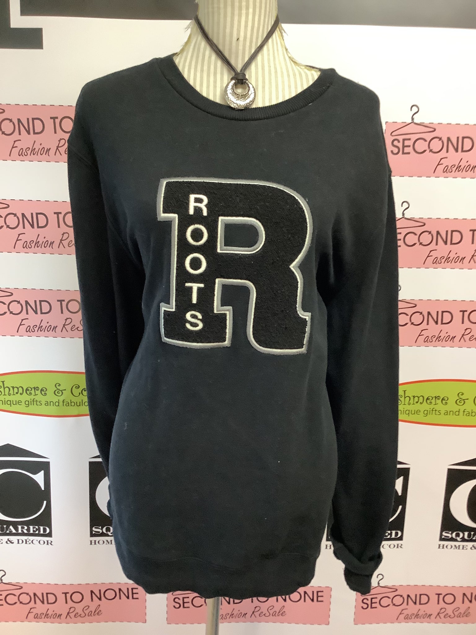 Roots Varsity Crewneck in size large combines timeless athletic style with everyday versatility. This long-sleeve layer features a striking oversized logo patch with textured detailing that captures classic varsity aesthetics. The quality construction and excellent condition make it an exceptional value piece—perfect for layering over basics or wearing solo. Effortlessly chic and endlessly wearable.