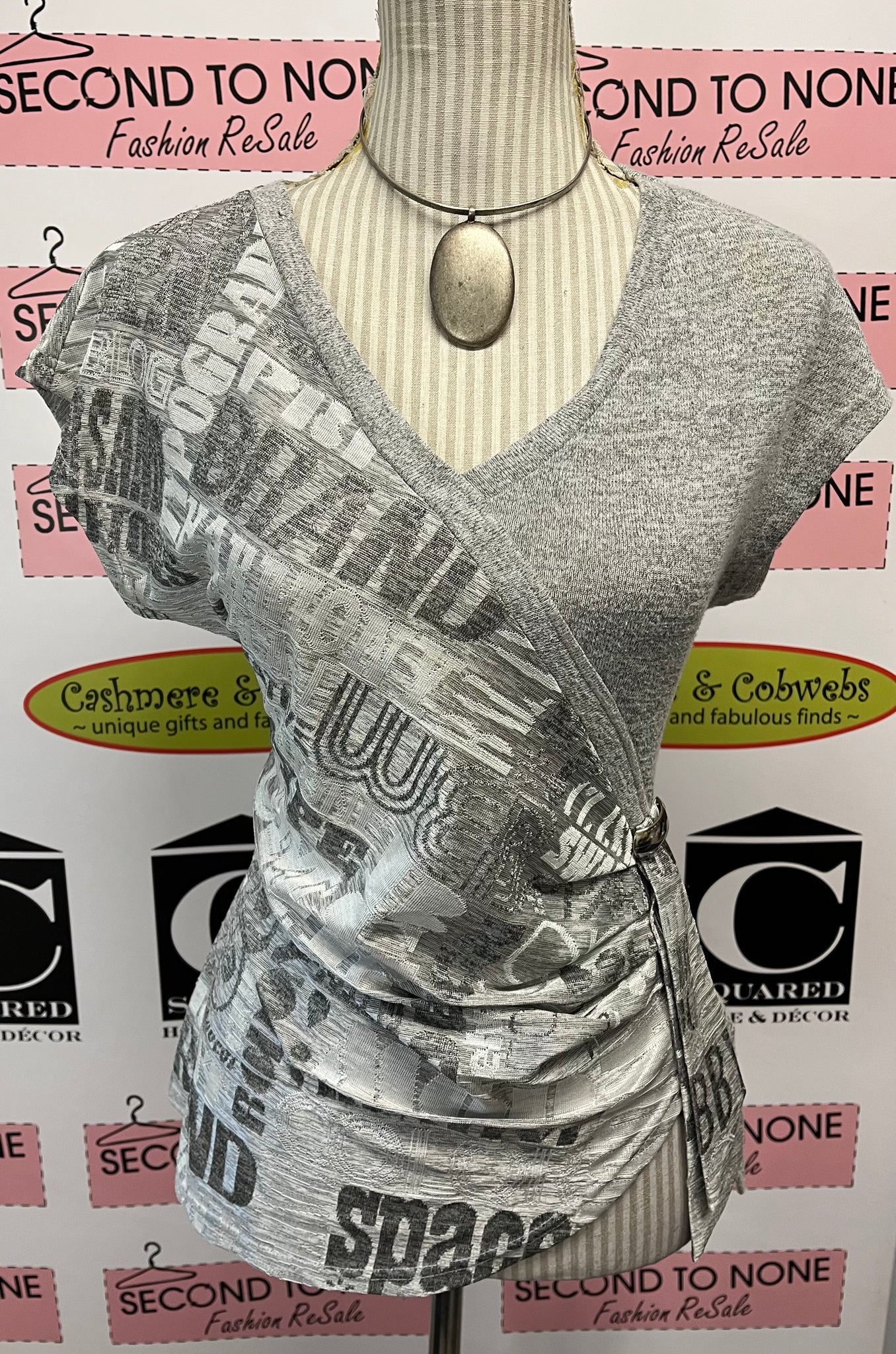• Cargar imagen en el visor de la galería, Silver Draped Word Print Top (Size M)