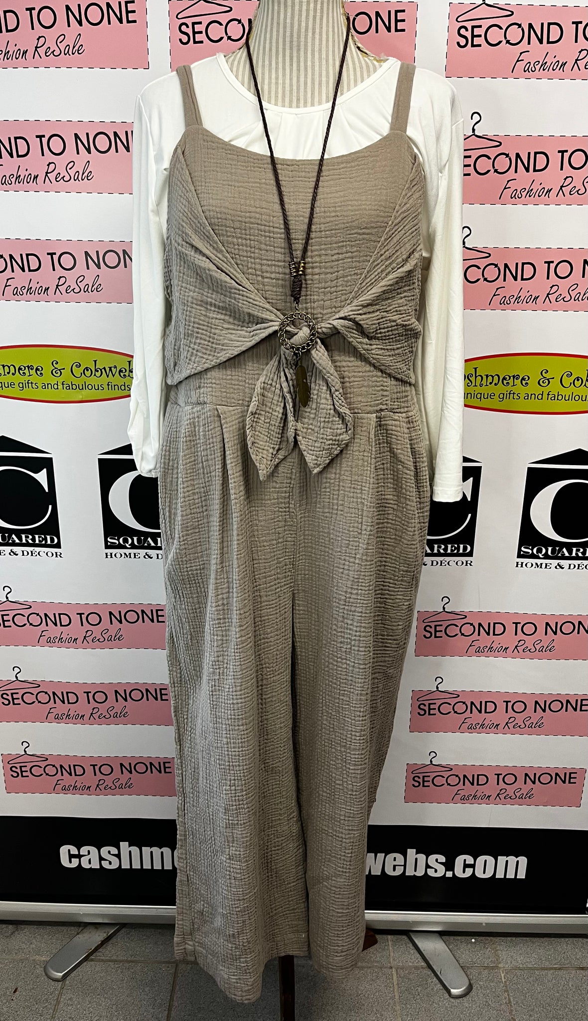 Effortlessly chic meets comfort in this cocoa brown crepes jumpsuit from Piccadilly. The charming tie front adds a touch of personality while the stretchy elastic back panel keeps you moving freely all day long. Wide-leg silhouette flows beautifully, and practical pockets mean you've got somewhere to stash your essentials. Perfect for dressing up or down, this versatile piece is your new go-to for looking put-together without the fuss.
