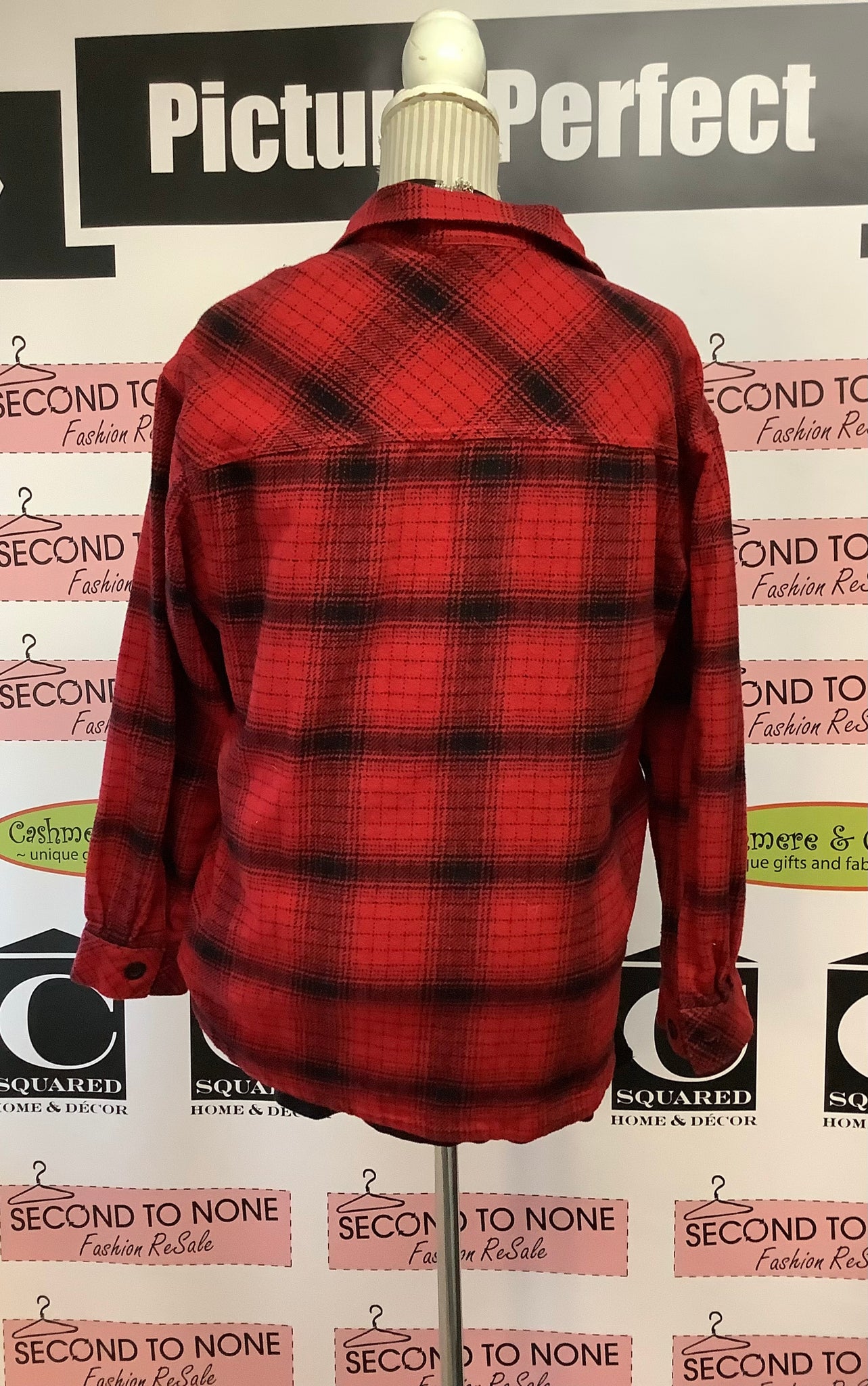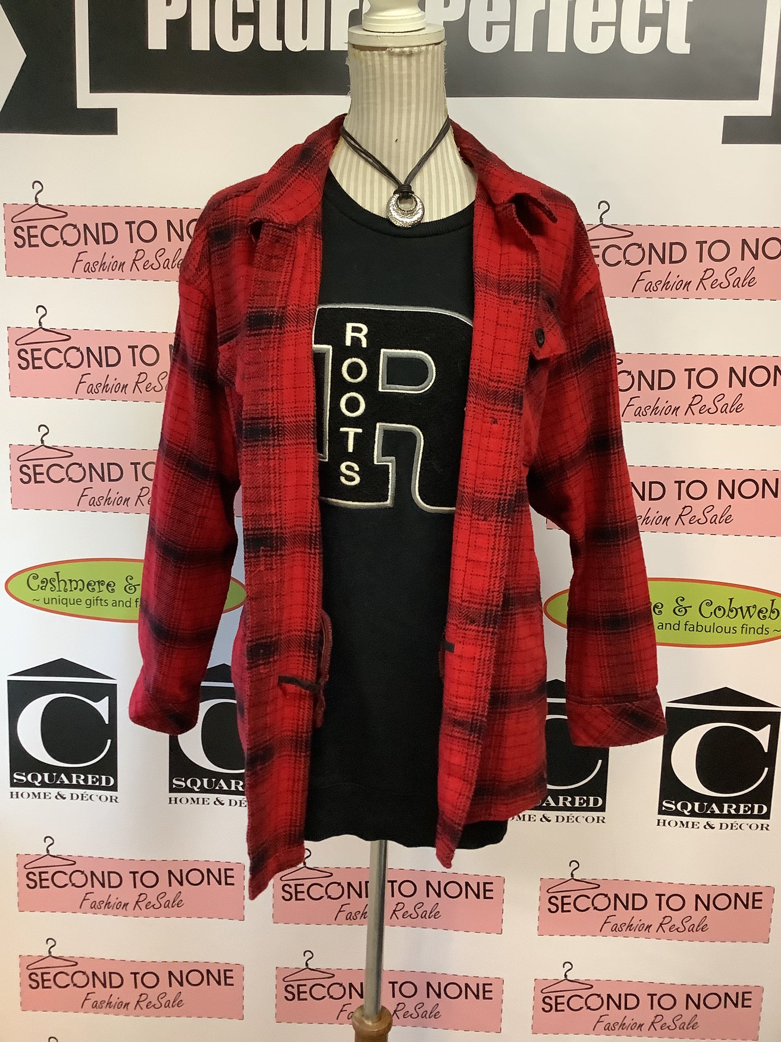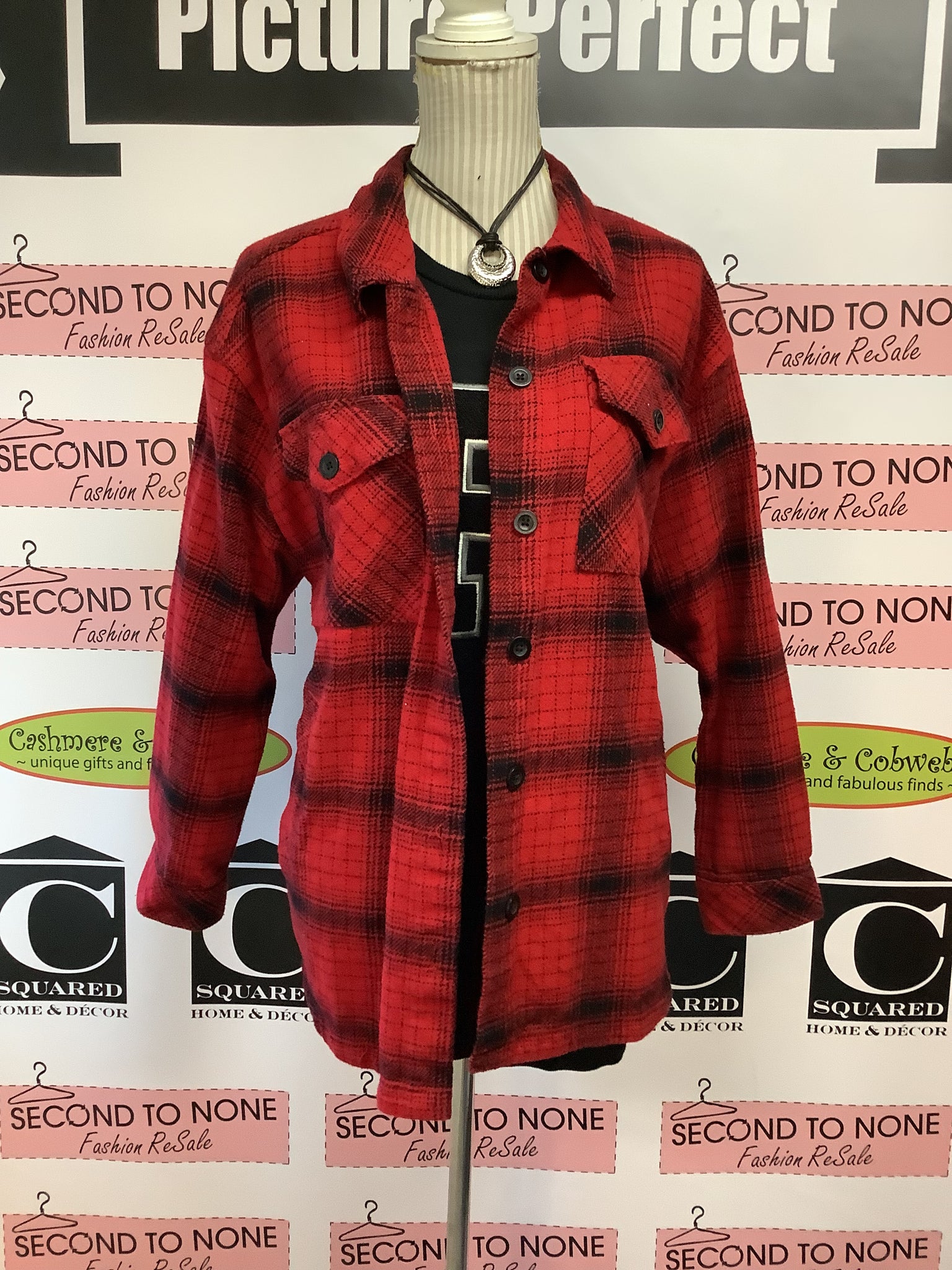 The B.C. Clothing Red Plaid Jacket combines timeless style with versatile layering. Crafted in a striking red and black plaid pattern, this collared jacket features black button closures down the front, dual chest pockets for essentials, and functional side pockets for convenience. The soft, quality fabric drapes beautifully whether worn open as a statement piece or buttoned for a polished look. Perfect for holiday gatherings and festive occasions, this jacket transitions seamlessly from season to season, making it an essential addition to any wardrobe.
