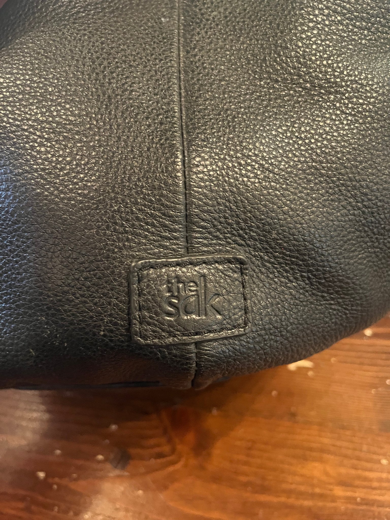 The Sak Leather Hobo Bag combines relaxed sophistication with practical design. Crafted from supple black pebbled leather, this slouchy silhouette features braided leather shoulder straps accented with silver studded cuffs for understated elegance. The interior reveals a vibrant striped lining that adds personality to everyday use. Thoughtfully designed with a snap-closure main compartment, zippered interior pocket, and exterior slide pocket, it keeps essentials organized and accessible. Decorative stitching details frame the top and middle, while the iconic Sak brand patch authenticates this versatile piece. In excellent condition, this hobo bag transitions seamlessly from week to weekend.