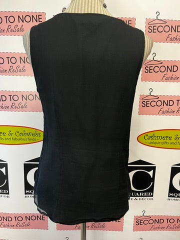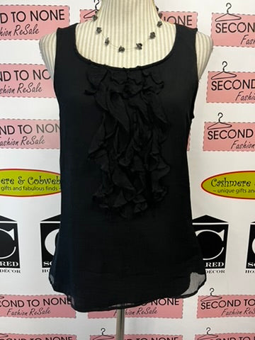 Elevate your wardrobe with this exquisite Black Ruffled Tank Top, a quintessential piece crafted from luxurious silk and delicately lined in polyester. The unique ruffled front and crinkled texture create a fluid silhouette that transitions seamlessly from day to night. Ideal for both sophisticated evenings and casual outings, it will pair effortlessly with tailored trousers and sleek heeled boots, ensuring you embody elegance in every setting. Size S. Brand: Ispiri.