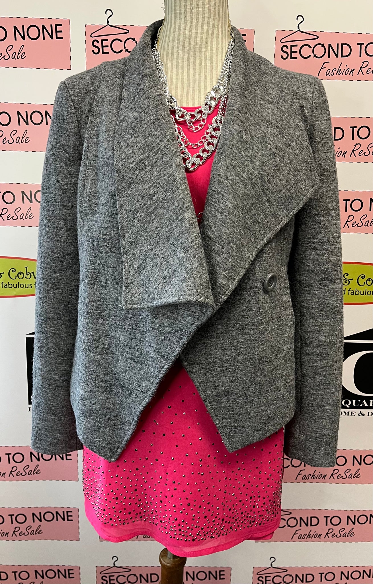 Meet your new favorite sidekick: the Cropped Wool Blend Jacket! This soft grey wonder from Kenar has a double-breasted design that’s as stylish as it is snug. With a quirky asymmetrical lapel and pockets for your tiny treasures, it’s perfect for keeping cozy while looking fabulously chic. Who knew warmth could be this trendy?