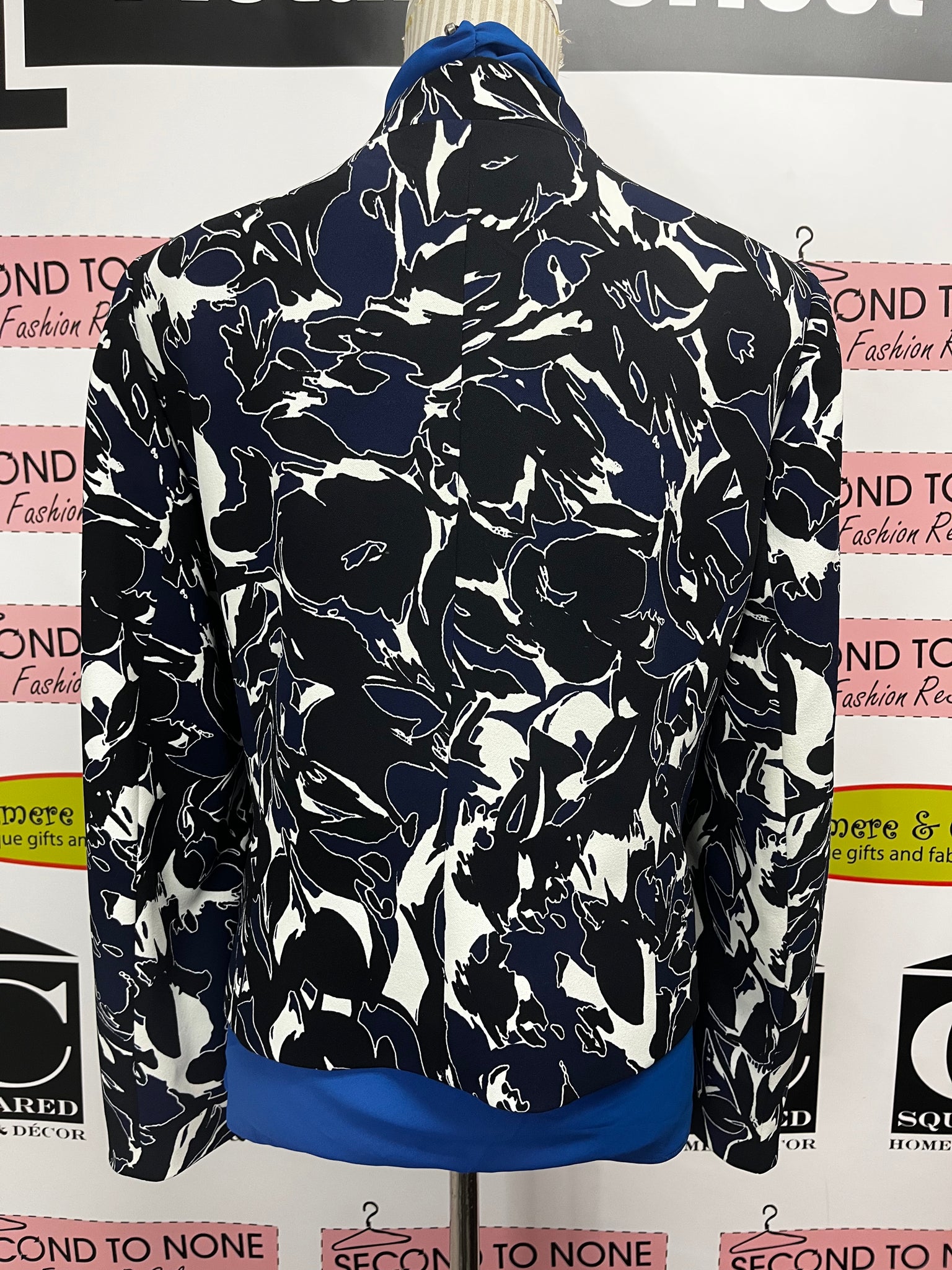 Meet your new styling secret weapon. This Kasper blazer features a bold blue, black, and white abstract print that transforms any outfit from predictable to unforgettable. The open-front cut gives you total flexibility—layer it over dresses, sweaters, or basics for instant dimension. Dress it up with tailored separates or down with your favorite jeans and sneakers. One blazer, endless possibilities.