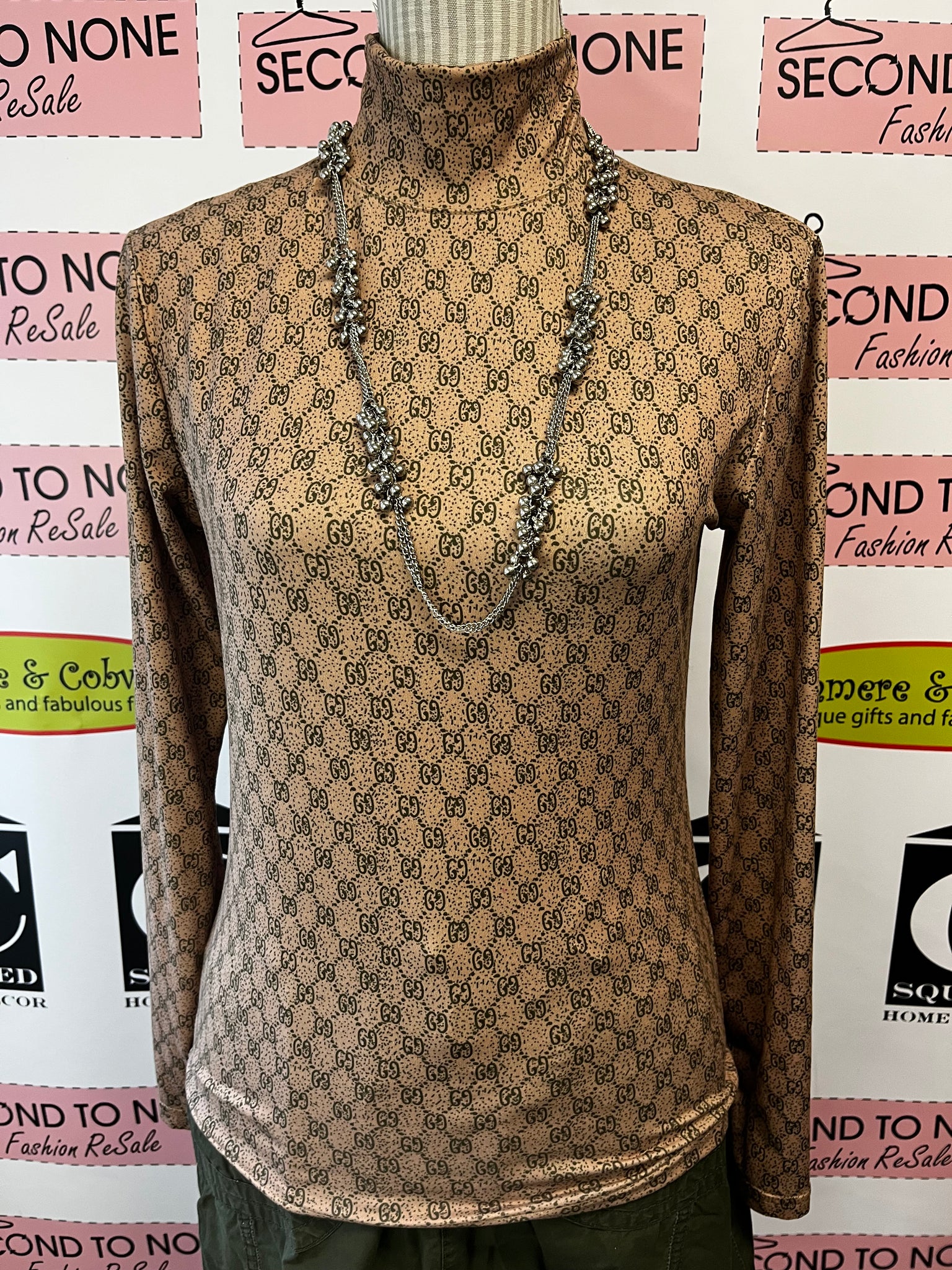 Slip into understated elegance with this feather-light beige turtleneck by Fulangma. The playful dark green swirl-and-check pattern brings just enough personality without demanding attention—layer it, wear it solo, or tuck it into your favorite vintage finds. Soft enough to live in, refined enough to feel intentional. A wardrobe essential that whispers rather than shouts.