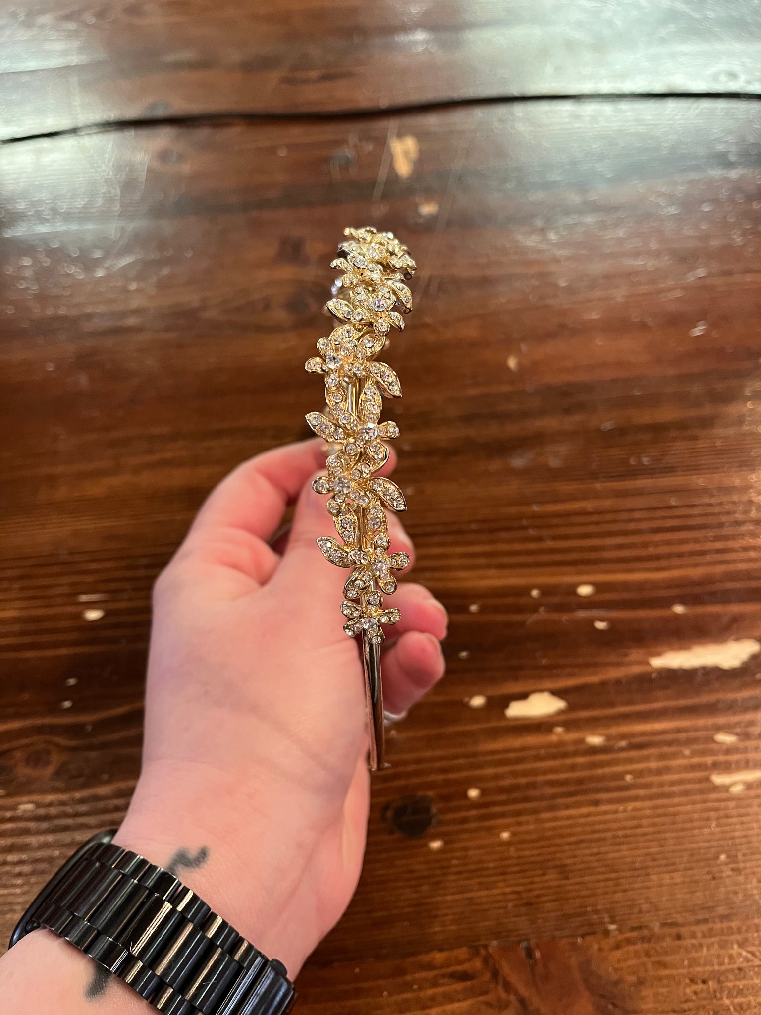 Add a touch of bling to your crown with our Rhinestone Floral Headband! This gold tone stunner isn’t just for weddings—rock it daily to shine brighter than a disco ball (or at least a well-polished apple). Perfect for turning heads and making your hairdo a little extra fabulous!