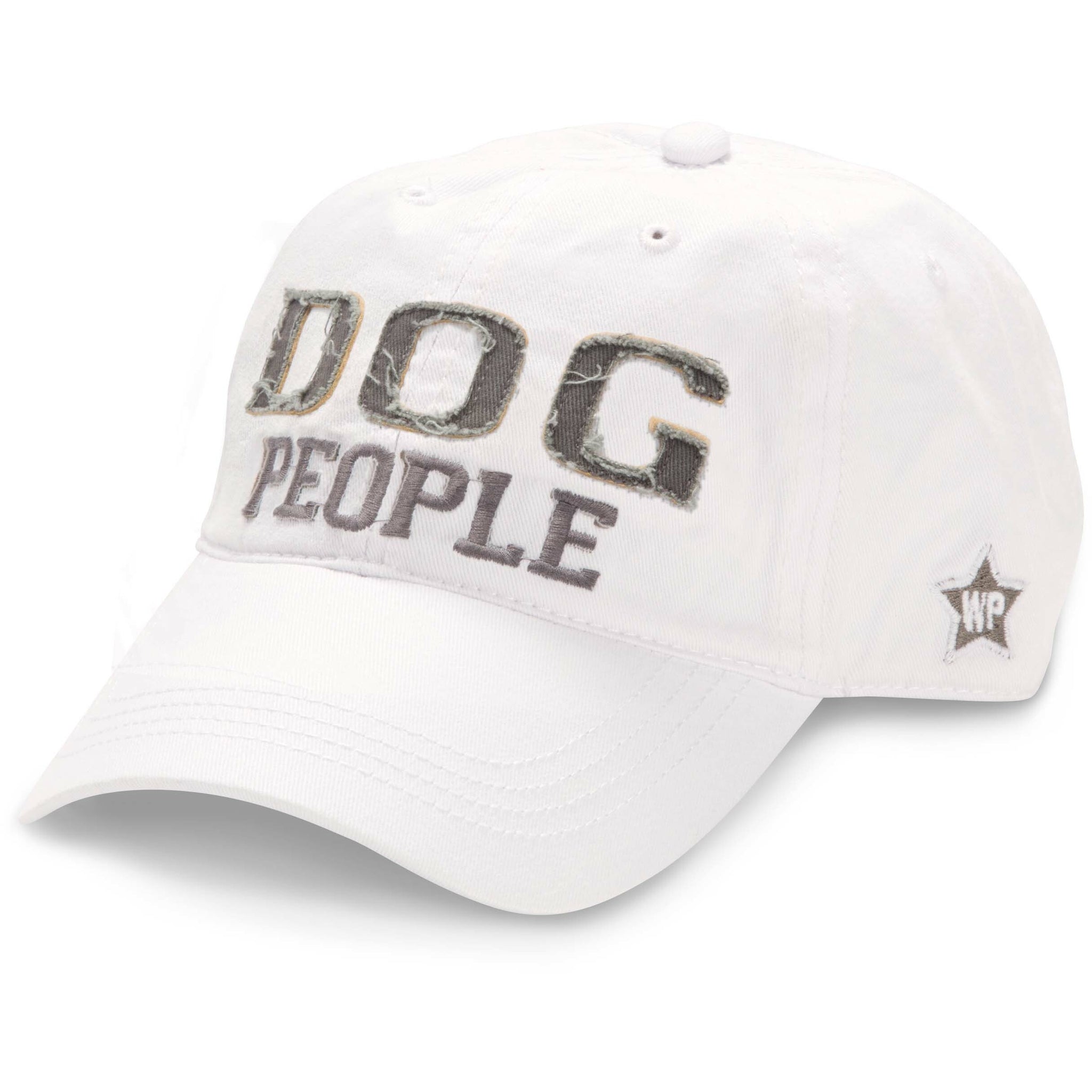 Hat, made from 100% high-quality cotton, and a strap at the back of the hat allows for adjusting. "Dog People" text is embroidered and sewn-in with a frayed edge, as is the We People logo on the side of the hat. The brim features screen-printed text showing the "Dog People" logo. Great for those who want to show their love of dogs.