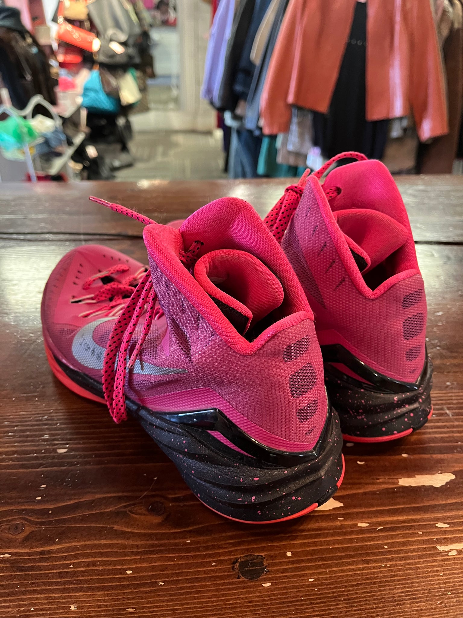 Step into bold style with these limited-edition Nike Hyperdunk 2014 "Think Pink" basketball shoes—a vibrant tribute to breast cancer awareness. Featuring an eye-catching all-pink upper with a striking black heel, these high-tops deliver court-ready performance wrapped in feel-good fashion. The personalized "I can do all things" inscription adds a motivational touch that makes them truly one-of-a-kind. Perfect for collectors, sneaker enthusiasts, or anyone who loves making a colorful statement while supporting a meaningful cause.