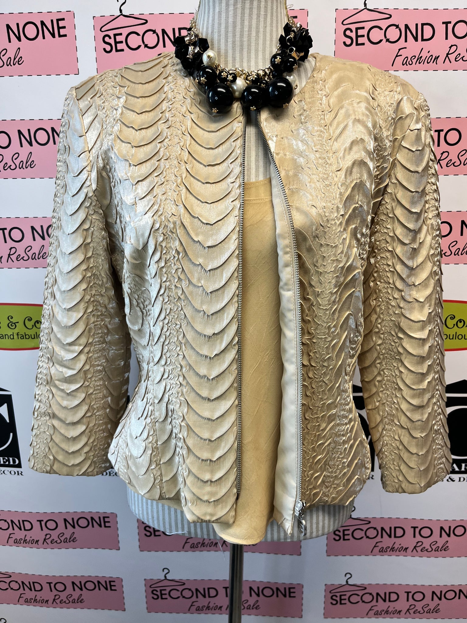 This playful vintage set from Nueva features a light gold tank top and coordinating jacket, designed to brighten your wardrobe with a touch of classic Canadian style. Wear the pieces together for a polished look or mix and match separately to let your creativity shine. Perfect for adding a unique vintage vibe to any outfit!